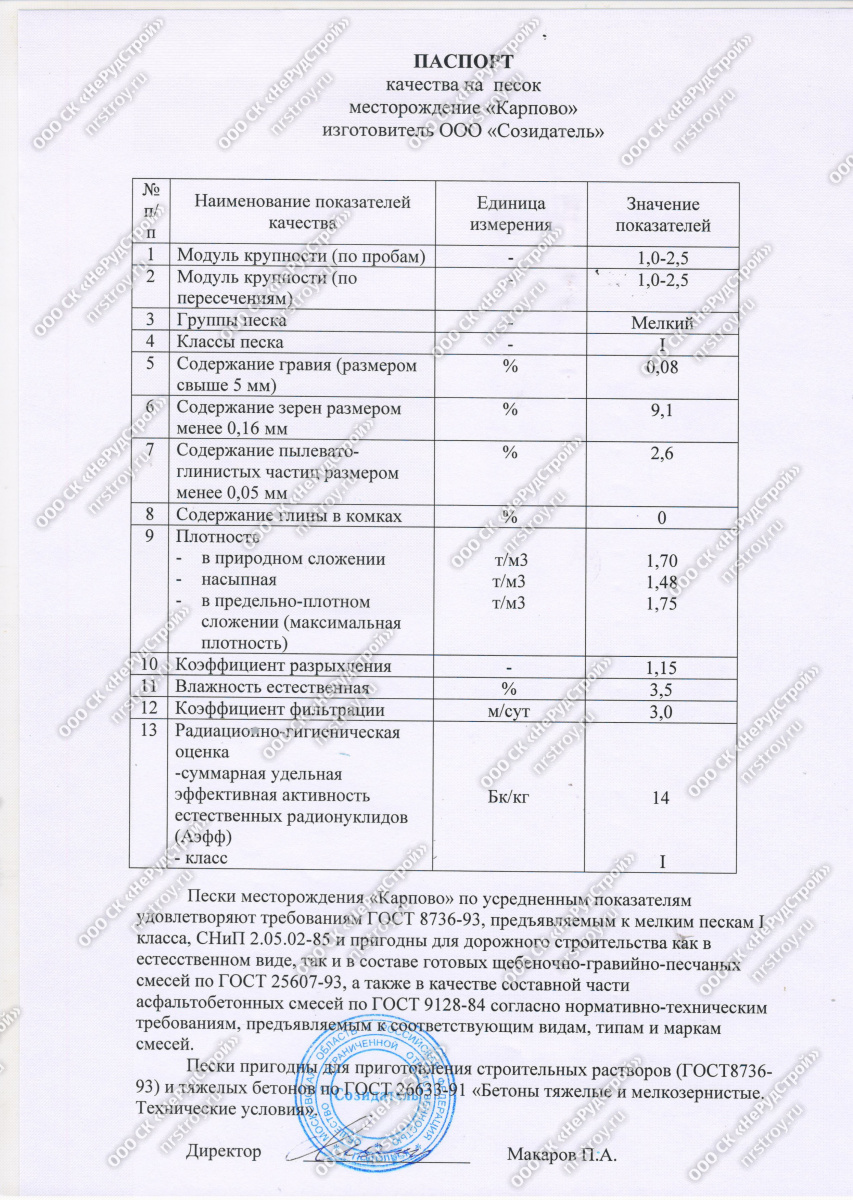 В Каширу привезём щебень известняковый всех фракций (ГОСТ 8267-93) ООО "Коломенский щебеночный карьер", песок строительный месторождения "Карпово". Песок удовлетворяет требованиям ГОСТ 8736-93 и пригоден для дорожного строительства, приготовления строительных растворов и тяжелых бетонов: